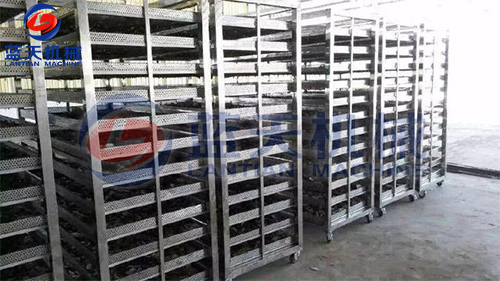 板栗烘干的預(yù)處理:新采收的板栗,水分含量高,可溶性糖含量低,特別是里面的澀皮難以剝離,如直接加工風(fēng)味不佳,并且影響產(chǎn)品質(zhì)量。經(jīng)預(yù)處理后,栗果內(nèi)的部分淀粉轉(zhuǎn)化為可溶性糖,并散失掉部分水分,相對地使可溶性物質(zhì)的含量增加,風(fēng)味轉(zhuǎn)好。處理方法是將新采收的板栗放于室內(nèi),厚度4~5cm,每天翻動2~3次,堆放4~5d(天)即可。