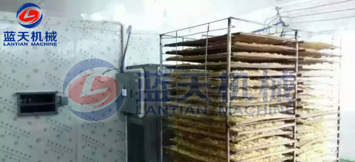 黃姜的烘干單批次重量較大,一般清洗后采用切片機進行切片,厚度在3-5毫米左右,然后裝入物料盤,推入烘干房,2臺12P主機配11.5米長4米寬2.2米高烘干房每次進物料車18臺,每臺可以放黃姜片300斤,總共一批次可以放入5400斤新鮮黃姜片,黃姜片含水量較大,系統(tǒng)需要每邊配置2臺新風閥,溫度從55開始進行提升,每批次烘干總耗時22小時,每小時用電30度,總用電660度,按照每度電1元計算,每斤新鮮黃姜片的烘干成本是0.12元。