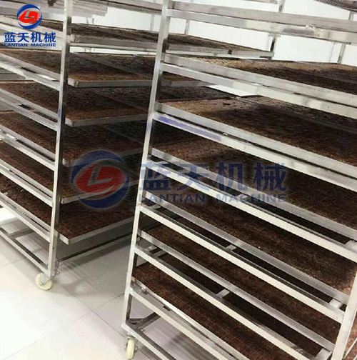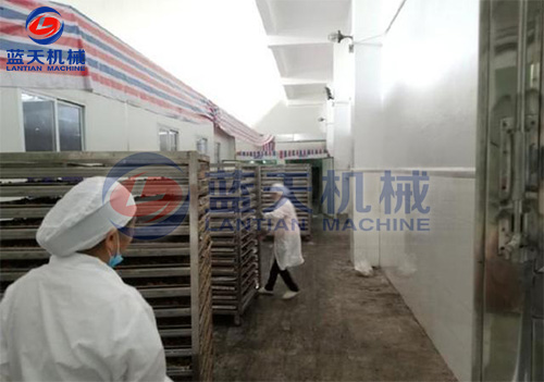 紅糖烘干工藝:將紅糖磚切成方塊狀,置入托盤中,在物料架中分層放好,注意層與層之間的距離,將物料車推入烘干房,開始啟動溫濕控制系統(tǒng),在紅糖烘干機的使用過程中,第一個小時可以只升溫不排濕,因為在工作的第一階段,烘干房里面的濕度很低。第二階段設定為烘干加排濕的工作程序模式。紅糖烘干機帶有余熱回收功能。在排濕過程中的熱量會重新參與到烘干房的熱循環(huán)。排濕過程當中不會造成熱量浪費,從而降低了運行成本。