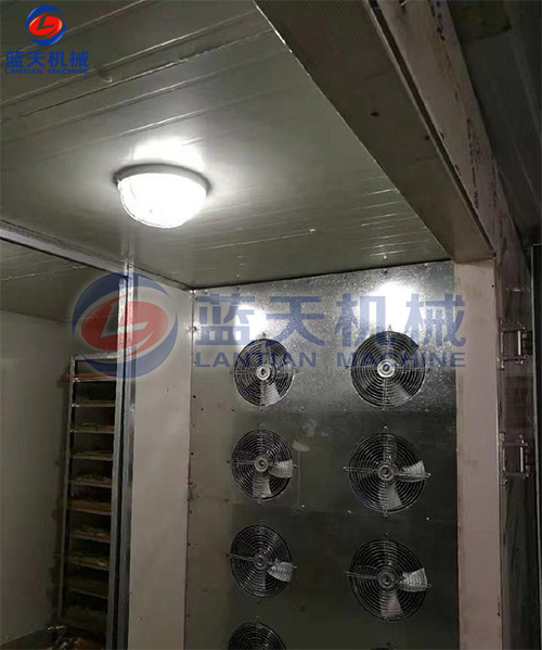 3. 茶葉烘干房采用全封閉結(jié)構(gòu),熱空氣箱內(nèi)循環(huán),節(jié)能高效。采用內(nèi)置式耐高溫循環(huán)風機、大大減小熱損失、強化了熱量的傳遞。烘干房可增設有可調(diào)式均風板,可上下調(diào)節(jié)開度,使箱內(nèi)上下溫度均勻。保溫層厚100mm,材質(zhì)為聚氨脂板材。烘車烘盤為行業(yè)統(tǒng)一標準,烘盤網(wǎng)盤適用于多行業(yè),互換性強。自動恒溫控制、工作時間定時,機械化生產(chǎn),批次產(chǎn)品質(zhì)量穩(wěn)定。庫板應客戶要求可采用304不銹鋼材質(zhì)制造,符合國家對食品衛(wèi)生的需求。