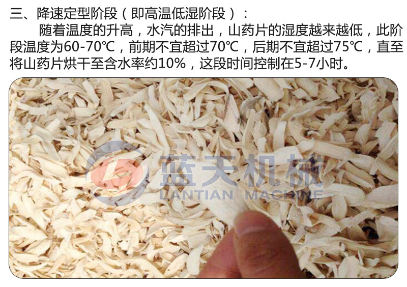 山藥的含水量大不宜長期儲存,所以為了山藥的長期保存,一般把山藥切片后用山藥烘干機(jī)進(jìn)行烘干處理。山藥切片的厚薄、烘干溫度、烘干時間的把控對于山藥片的烘干效果很重要。小編給大家介紹下使用山藥烘干設(shè)備烘干上藥片的烘干過程。