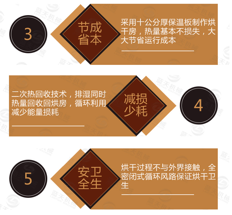 5、小型山藥烘干機(jī)空氣循環(huán)系統(tǒng)采用風(fēng)機(jī)循環(huán)送風(fēng)方式,風(fēng)循環(huán)均勻效率高。風(fēng)源由循環(huán)送風(fēng)電機(jī)(采用無觸點開關(guān))帶動風(fēng)輪經(jīng)由加熱器,而將熱風(fēng)送出,再經(jīng)由風(fēng)道到山藥烘干機(jī)內(nèi),再將使用后的空氣吸入風(fēng)道成為風(fēng)源再度循環(huán),加熱使用。確保室內(nèi)溫度均勻性。