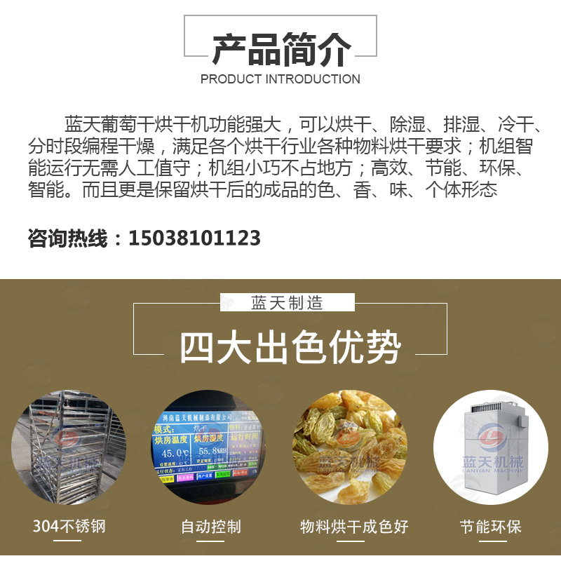 想了解葡萄干烘干機器價格的客戶,歡迎聯(lián)系我們或在線咨詢,支持到廠試機。