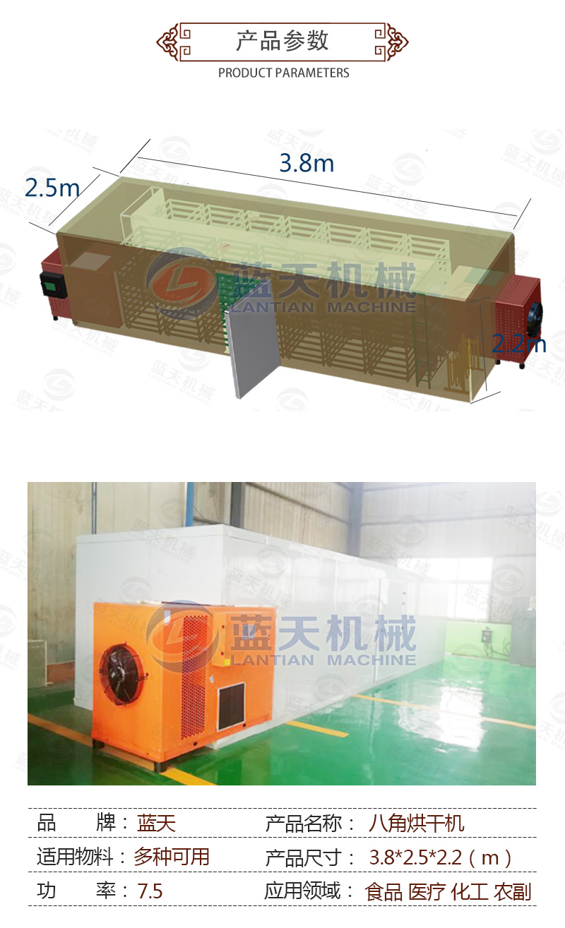有的客戶八角產(chǎn)量數(shù)萬噸,如果選用大型八角烘干機(jī),在幾天-1個(gè)月的時(shí)間內(nèi)就可以完成全部八角的烘干,且大型八角烘干機(jī)的烘干效果很棒,色澤、破損率、香味都保持的不錯(cuò)。講到這里,大家應(yīng)該就會(huì)知道八角烘干機(jī)有不同型號(hào)的,那對(duì)八角烘干機(jī)多少錢來說,就是看機(jī)型而異了,如果您對(duì)八角烘干機(jī)感興趣有需要,歡迎您聯(lián)系我們進(jìn)行咨詢。