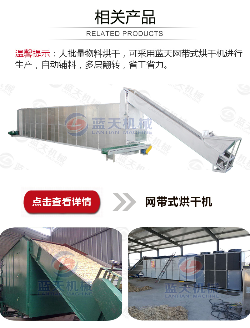 豆豉烘干機(jī)還可以用在魚(yú)粉、咖啡豆、蒜片、飼料顆粒、皮革污泥、大豆豆粕、油茶籽、山茶籽、玫瑰花、魚(yú)干,蔬菜,食品,辣椒等材料的烘干處理。