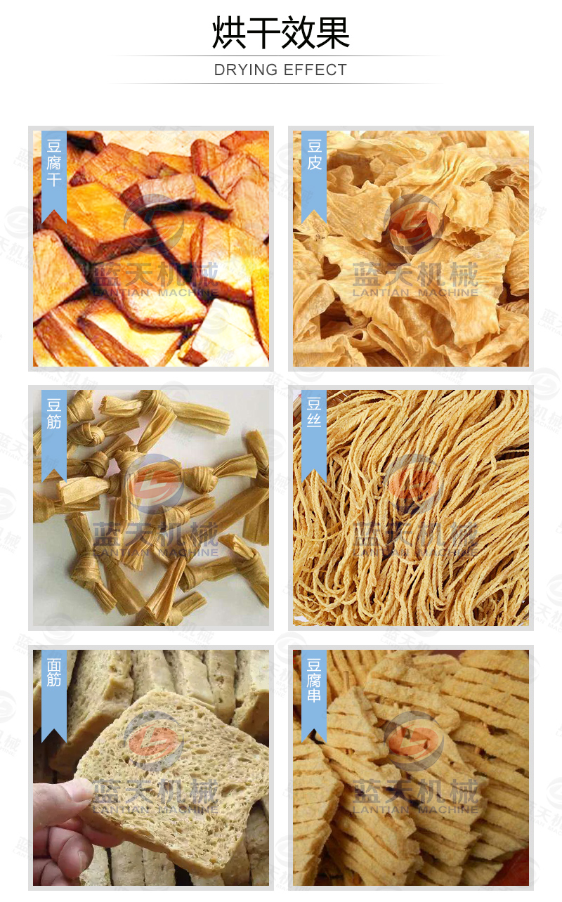 豆腐干坯要平鋪,片塊間保留適當?shù)拈g隔,不能重疊,否則會造成花片或壓痕。豆腐干烘干時,豆腐干烘干設備應先中溫、再低溫,一般不用高溫。一般豆腐干烘干機宜采用的溫度為85℃左右,不超過95℃。豆腐干烘干設備溫度太低,效率低且易使產(chǎn)品變質;溫度太高,容易引起豆干坯內部水分迅速汽化而沖破豆干坯表面,造成不均勻甚至表面破損狀態(tài),形成感官缺陷。如果要使烘干后豆腐干形成特別耐咀嚼的感覺,豆腐干烘干機則應采用低溫長時間的方法。豆腐干烘干時間根據(jù)豆腐干設計的軟硬度及休閑豆干坯厚薄決定。