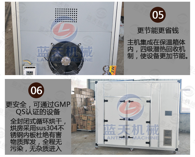 (7)設(shè)備運(yùn)行沒有三廢的排放,不需要鍋爐或者燒煤燒柴,設(shè)備主要是吸收空氣中熱量對(duì)物料進(jìn)行烘干,真正實(shí)現(xiàn)節(jié)能生產(chǎn)。