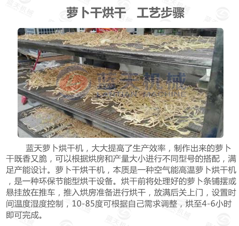 蘿卜干是一種風味、具有悠久歷史的食品。傳統(tǒng)蘿卜干加工采用是風脫水的方法,利用日照和風力,加速蘿卜的蒸騰作用,使蘿卜大量脫水,并利用鹽的高滲透壓來保存。我們介紹一種基于空氣能技術熱風烘干的蘿卜干烘干機代替日曬來加工蘿卜干,加快蘿卜干加工過程。