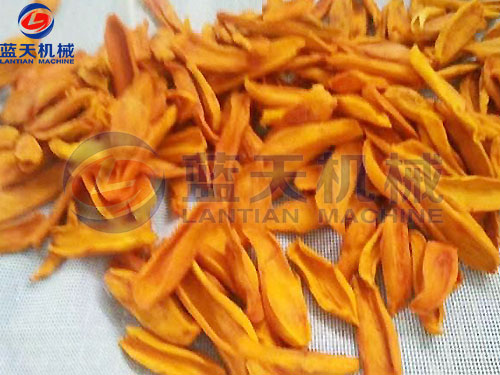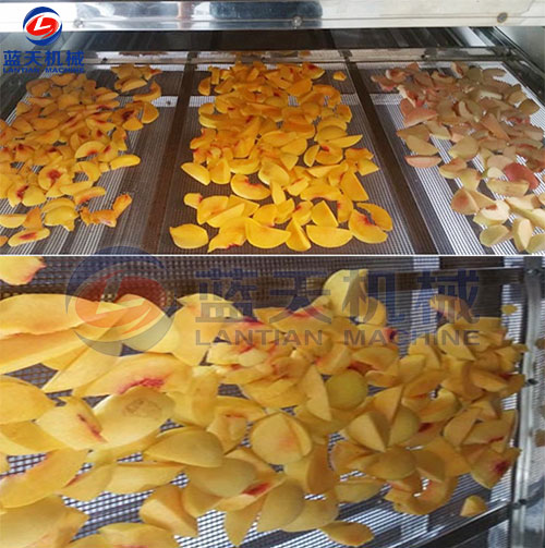 2、均勻切成小塊,放在黃桃烘干機(jī)的托盤上,配置的托盤材料是食品級(jí)別的,不會(huì)對(duì)黃桃造成污染。